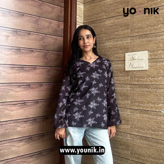 Latest Marron Printed Cotton Short Kurti