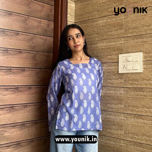 Lavender Handblock Print Pure Cotton Short Kurti